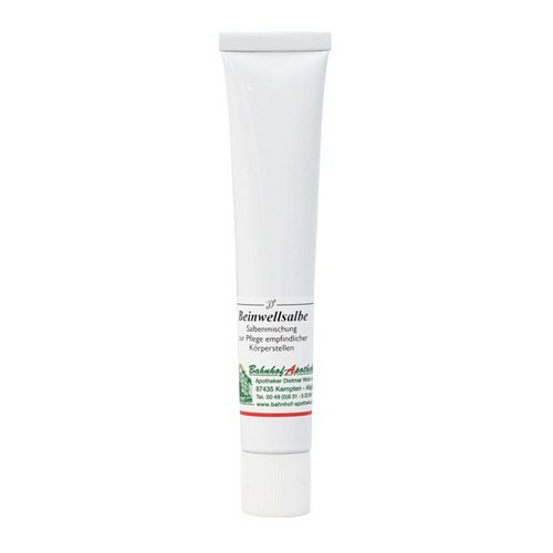 Die Beinwellsalbe mit Beinwelltinktur, frei von Pyrrolizidinalkaloiden, wirkt unterstützend in der Behandlung empfindlicher Körperstellen und schlecht heilender, wunder Hautstellen. Die Beinwellsalbe hat sich zur Pflege im Wochenbett bewährt als auch bei der Wundpflege kranker und alter Menschen.