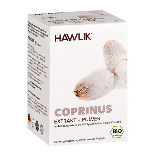 HAWLIK Bio Coprinus Extrakt und Pulver Kapseln enthalten wertvolles Vitamin C.