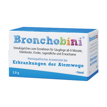 Dieses Produkt aus dem Hause Heel kann bei Erkrankungen der Atemwege angewendet werden. Es lindert die Erkältungsbeschwerden, die durch Entzündungen der Atemwege entstehen. Zudem wird die Besserung der typischen Symptome wie Reiz- und Krampfhusten zusätzlich unterstützt. Die spezielle Zusammensetzung der natürlichen Inhaltsstoffe sorgt dafür, dass die erkältungsbedingte Entzündung der Atemwege gelindert wird und dass Ihrem Kind das Abhusten von festsitzendem Schleim erleichtert wird. Auf diese Weise kann Bronchobini Ihrem Kind helfen, den Infekt zu überwinden, ohne dass der kindliche Organismus belastet wird. Mit Bronchobini Globuli können Sie Ihr Kind auf einfache und natürliche Weise versorgen.