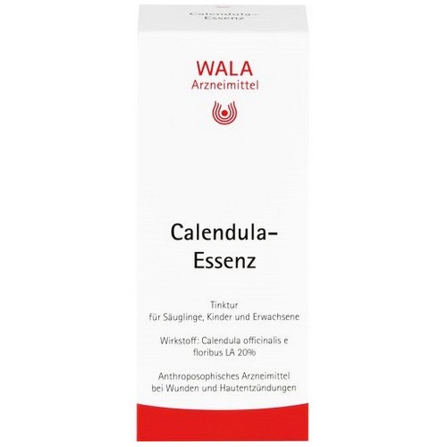 Calendula-Essenz, Tinktur. Wirkstoff: Calendula officinalis e floribus LA 20% Anwendungsgebiete gemäß der anthroposophischen Menschen- und Naturerkenntnis. Dazu gehören: Zur Vereiterung tendierende Entzündungen von Haut und darunterliegenden Geweben; sekundäre Wundheilung. Lokale Behandlung von Wunden und oberflächennahen Entzündungen. Spülung von Wundhöhlen und entzündeten Schleimhäuten. Warnhinweise: Enthält 204 mg Alkohol (Ethanol) pro 1 ml entsprechend 20 % (w/v). Stand: April 2023. WALA Heilmittel GmbH, 73085 Bad Boll/Eckwälden, DEUTSCHLAND. Zu Risiken und Nebenwirkungen lesen Sie die Packungsbeilage und fragen Sie Ihre Ärztin, Ihren Arzt oder in Ihrer Apotheke.