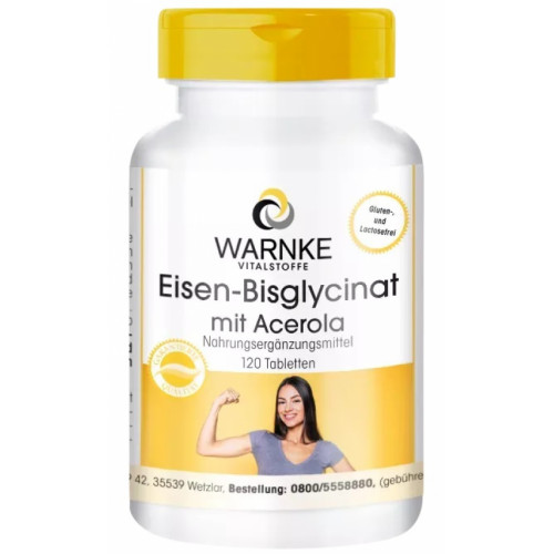 Warnke Eisen-Bisglycinat mit 40 mg Eisen Elementargehalt und Acerola - 120 vegane Tabletten