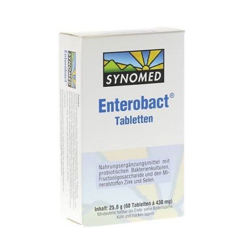 Enterobact vegetarische Tabletten ist ein Nahrungsergänzungsmittel mit probiotischen Bakterienkulturen Fructooligosaccharide und den Mineralstoffen Zink und Selen.
