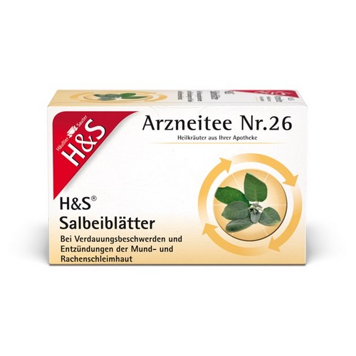 H&S Salbeiblätter. Anwendungsgebiete: Traditionelle innerliche Anwendung: Zur Linderung leichter Verdauungsbeschwerden wie Sodbrennen und Blähungen sowie zur Linderung von vermehrter Schweißsekretion. Traditionelle Anwendung in der Mundhöhle: Zum Gurgeln bei Entzündungen im Mund und Rachen. Traditionelle äußerliche Anwendung: Zur Linderung von leichten Hautentzündungen. Diese Anwendungen stützen sich ausschließlich auf die langjährige Anwendung des Arzneimittels in den Anwendungsgebieten. Zu Risiken und Nebenwirkungen lesen Sie die Packungsbeilage oder fragen Sie Ihren Arzt oder Apotheker. H&S Tee-Gesellschaft mbH & Co. · Heidachstr. 62 · D-88079 Kressbronn/Bodensee.
