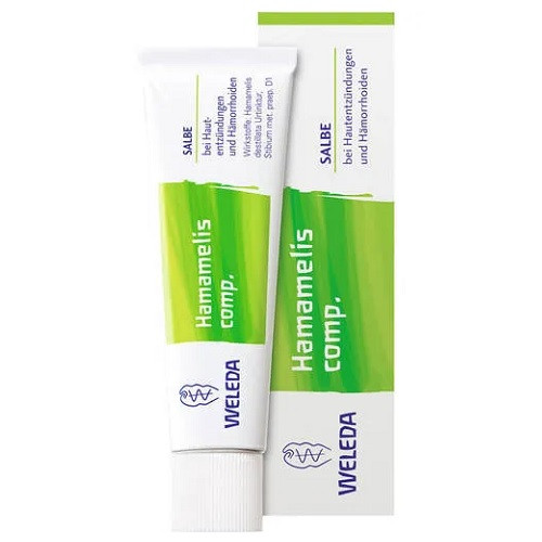 Hamamelis comp. wirkt der Entzündung entgegen und lindert den Juckreiz. Die Wände der Hämorrhoidalvenen werden gestärkt, so dass sie sich wieder in ihre ursprüngliche Form zurückziehen können. Die Wirkstoffe Zaubernuss und Stibium metallicum praeparatum hemmen die Entzündung und unterstützen die Haut bei der Heilung. Nässende Stellen trocknen ab.