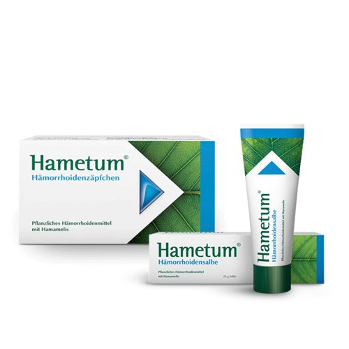Hametum® Hämorrhoidensalbe und -zäpfchen sind die wirksame pflanzliche Therapie bei Hämorrhoidalbeschwerden und dabei gut verträglich. Unsere Empfehlung: Die Hametum® Hämorrhoidensalbe für den Tag und die Hämorrhoidenzäpfchen für die Nacht. Beide Hametum®- Präparate sind in der Akutphase als Ergänzung zu einer Schmerzsalbe und für die Basistherapie geeignet.
