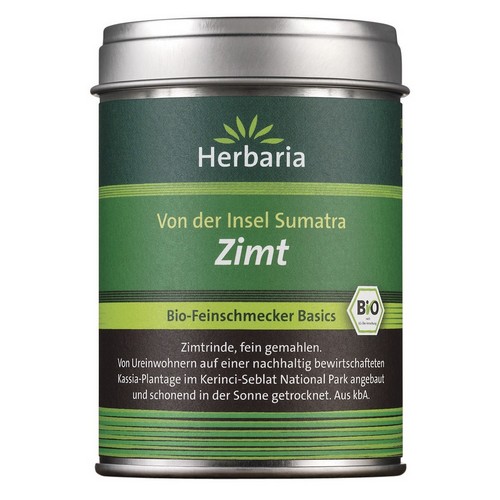 Herbaria Zimtrinde gemahlen aus kontrolliert biologischem Anbau, von Ureinwohnern auf einer nachhaltig bewirtschafteten Cassia-Plantage im Kerinci-Seblat National Park auf der Insel Sumatra. Die fruchtbaren Böden der Hänge des Kerinci-Hochtals eignen sich sehr gut für den Anbau von Cassia-Bäumen & verleihen diesem Zimt ein besonders intensives Aroma. Es wurde ein Internes Controll Programm (ICS) implenetiert, welches zur ersten Rainforest Alliance Zertifizierung für Zimt geführt hat. Ziel ist es die nachhaltige Landwirtschaft direkt zu unterstützen, die natürlichen Ressourcen zu erhalten & der sozioökonomischen Entwicklung zu dienen. Dies gelingt durch ein profitables Unternehmen, welches eine gleichmäßige Versorgung der Bio-Produkte in höchster Qualität gewährleistet. Die Anbauer erhalten deutlich höhere Preise & können nachhaltig wirtschaften. Verwendet wird Zimt bei Backwaren & Desserts sowie zum Abrunden von herzhaften Soßen. In der indischen Küche ist Zimt ein fester Bestandteil.