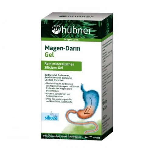 Silicium-Gel bei akuten oder chronischen Magen-Darm-Beschwerden, wie Bauchschmerzen, Übelkeit, Erbrechen, Blähungen, Durchfall, Sodbrennen, Symptome eines Reizdarmsyndroms.