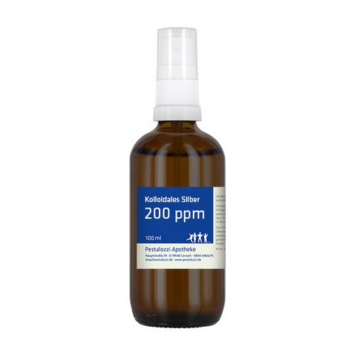 Das kolloidale Silber 200 ppm wird mit hochreinem destillierten Wasser unter qualifizierten Laborbedingungen frisch hergestellt und in einer dunklen Glasflasche geliefert. Die Herstellung erfolgt in der Apotheke unter überwachten Laborbedingungen. Das kolloidale Silber wird auf elektrolytischem Wege mit Hilfe eines entsprechenden Generators hergestellt. Dabei werden aus 99,99% reinem Silber kleinste Partikel gebildet und in destilliertem Wasser verteilt. Wir arbeiten dabei ohne Einsatz von Zusatzstoffen. Bitte beachten Sie: Kolloidales Silber ist kein Arzneimittel und daher auch ohne Angabe einer Indikation. Aus rechtlichen Gründen bieten wir daher das kolloidale Silber nur für technische Zwecke an. Nicht zum Einnehmen.