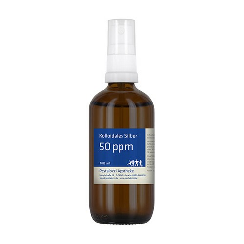 Das kolloidale Silber 50 ppm wird mit hochreinem destillierten Wasser unter qualifizierten Laborbedingungen frisch hergestellt und in einer dunklen Glasflasche geliefert. Die Herstellung erfolgt in der Apotheke unter überwachten Laborbedingungen. Das kolloidale Silber wird auf elektrolytischem Wege mit Hilfe eines entsprechenden Generators hergestellt. Dabei werden aus 99,99% reinem Silber kleinste Partikel gebildet und in destilliertem Wasser verteilt. Wir arbeiten dabei ohne Einsatz von Zusatzstoffen. Bitte beachten Sie: Kolloidales Silber ist kein Arzneimittel und daher auch ohne Angabe einer Indikation. Aus rechtlichen Gründen bieten wir daher das kolloidale Silber nur für technische Zwecke an. Nicht zum Einnehmen.