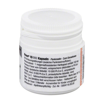 - Sollten ungewöhnliche Magen-Darm-Beschwerden oder Änderungen im Beschwerdebild auftreten, sollten Sie diese als Vorsichtsmaßnahme von Ihrem Arzt untersuchen lassen, um die Möglichkeit einer Schädigung des Darmes auszuschließen. Dies betrifft besonders Patienten, die täglich über 10 000 Ph. Eur.-Einheiten Lipase pro kg Körpergewicht einnehmen.