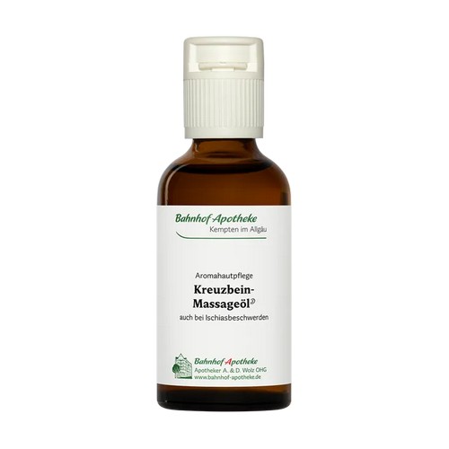 Das Kreuzbein-Massageöl ist eine ätherische Ölmischung, die einmassiert oder als warme Auflage dabei unterstützt, betroffene Körperpartien zu durchwärmen und so entspannend und entkrampfend regulieren kann.