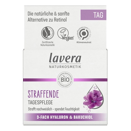 Die Straffende Tagespflege mit 3-fach-Hyaluron & und dem Power-Wirkstoff Bakuchiol wirkt dem Alterungsprozess der Haut auf natürliche Weise entgegen. Die hochwirksame und gut verträgliche Formel stimuliert nachweislich das hauteigene Kollagensystem und mindert Falten. Auch für sensible Hauttypen geeignet.
