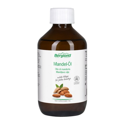 Bergland Mandel-Öl wird aus den reifen, schalenfreien Kernen des süßen Mandelbaumes gewonnen und ist ein klassisches Hautpflege-Öl für alle Hauttypen. Es ist mild und sehr gut hautverträglich. Aus diesem Grund wird es besonders bei sensibler, empfindlicher Haut und für die Baby-Pflege empfohlen. Die Haut wird samtweich und geschmeidig.
