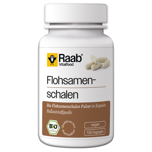 Raab Bio Flohsamenschalen Kapseln enthalten fein gemahlenes Flohsamenschalenpulver. Das Pulver enthält pflanzliche Ballaststoffe. Gemahlene Flohsamenschalen haben ein noch größeres Quellvolumen als ganze Flohsamenschalen und können das 45-fache ihres Gewichtes an Wasser binden.