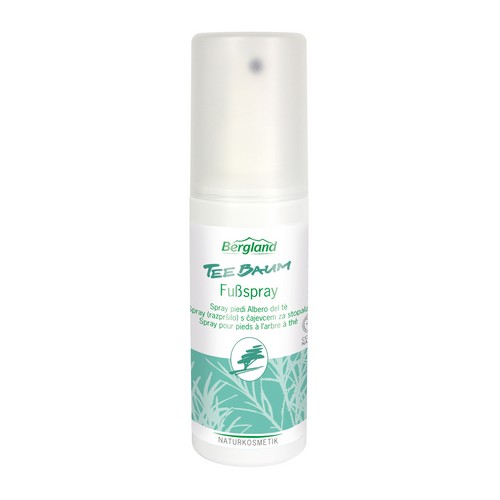 Das vegane Bergland Teebaum Fußspray mit naturreinem Teebaum-Öl, Bartflechten- und Rosmarin-Extrakt wirkt wohltuend bei müden und strapazierten Füßen. Es wirkt erfrischend bei Fußschweiß und Fußgeruch.