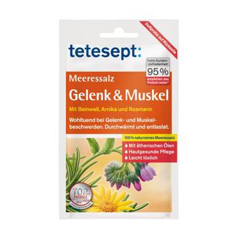 tetesept Meeressalz Gelenk & Muskel ist ein spezieller Badezusatz auf hautgesunder Meeressalz-Basis zur schonenden Entlastung und Durchwärmung beanspruchter Muskelpartien und bei Gelenkbeschwerden.