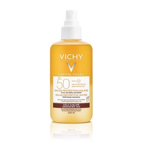 Das Bräunungsintensivierende Sonnenspray LSF 30 von Vichy bietet einen hohen Schutz vor UV-Strahlen - ohne zu kleben und weiße Rückstände auf der Haut zu hinterlassen. Die wässrige Textur ist mit Beta-Carotin angereichert, um einen ebenmäßigeren Teint sowie einen besseren Bräunungsgrad der Haut zu erhalten.